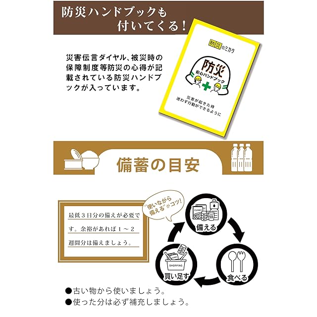 ✅【防災ハンドブックもついてくる!】当社の長期保存食品には緊急時に役立つ防災ハンドブックが同梱されています。防災の心得を詳細に解説したハンドブックは、災害時に役立つ情報を網羅しています。一家に一つ持っておけば、いざという時もしっかり対応、お客様の災害時をサポートします。
