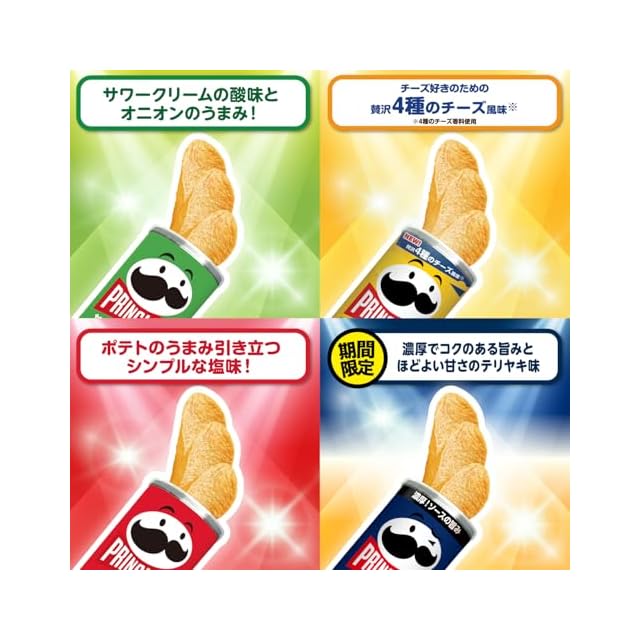 商品名:プリングルス ケロッグ M缶 4種 アソートセット (うましお・サワークリーム&オニオン・Hi! CHEESE!・テリヤキ) ※時期によりセット内容に変更あり 4個 (x 2)