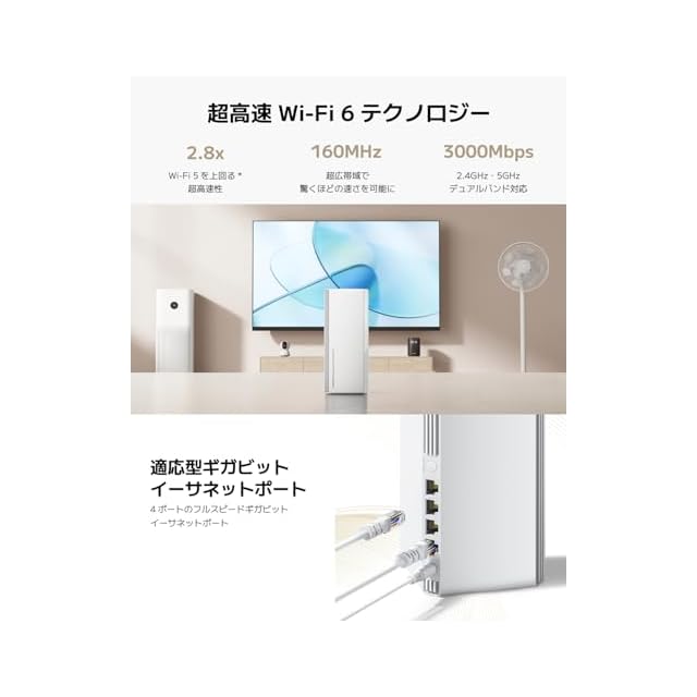 商品名:シャオミ(Xiaomi) メッシュwifiルーター 無線LAN AX3000 NE Wi-Fi 6 デュアルバンド 最大3000Mbps メッシュWi-Fiシステム wifi中継 2ユニット