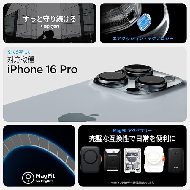 【18年社歴の技術力】Spigen iPhone 16 Pro ケース MagSafe対応 クリア ストラップホール 米軍MIL規格 ウルトラ・ハイブリッド・マグフィット ACS08136 (ゼロ・ワン・ホワイト)
