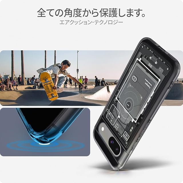 商品名:Spigen Google Pixel 8a ケース クリア ワイヤレス充電対応 バンパー2重構造 ストラップホール付き 米軍MIL規格取得 耐衝撃 すり傷防止 黄ばみ無し ウルトラ・ハイブリッド ACS07261 (ゼロ・ワン)