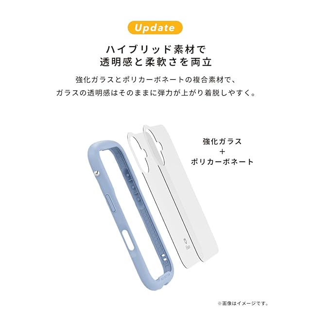 クリアな背面に、シールや写真を入れてカスタマイズが可能 / ガラス飛散防止加工で、万が一の破損も安心 / 手にしっかりフィットする「くびれ」形状で持ちやすさ抜群 / 背面は表面硬度9Hで傷が付きにくい / 強化ガラス複合材とTPUで、端末をしっかり保護 / 画面とカメラを守る、縁高設計 / シンメトリーな設計で背面のガタつきを防ぐ / ケースを付けたままでも操作感を損なわないサイドボタン / 選べる2カ所のストラップホール / シグネチャーボール搭載でストラップの付け方が広がる