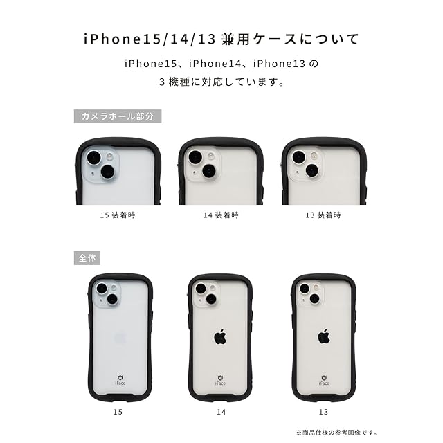 【商品仕様】15・14・13用:約縦16.4×横8.2×厚1.3cm、重量約39g / 主素材:ガラス・ポリカーボネート複合材、ポリカーボネート、TPU / ストラップ使用:可 / ワイヤレス充電:可 / :有