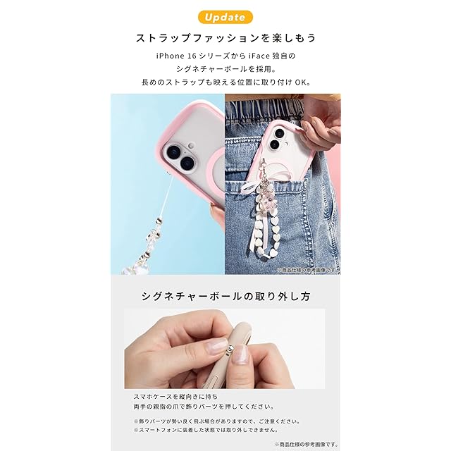 iFace ReflectionケースがMagSafe対応に。<br><br>MagSafeアクセサリーとの組み合わせで、あらゆる生活スタイルにフィットします。<br>強化ガラスに、柔軟さをプラス。ポリカーボネートとの合成素材を使用することで、着脱しやすくなっています。<br><br>・画面とカメラを守る、フチ高設計<br>・シンメトリーなフチ高設計で背面のガタつきを防ぐ<br>・ケースを付けたままでも押しやすいサイドボタン<br>・サイドホールもしっかり対応。指紋認証もスムーズに<br>・MagSafe充電/各種MagSafeアクセサリー対応<br>※ご使用の充電器によってワイヤレス充電がご利用いただけない場合があります。<br><br>・iFaceストラップホルダー専用設計でショルダーストラップの使いやすさアップ<br>※ストラップホルダーを併用する場合は、iFaceから発売している製品をご使用ください。類似品ではiFaceケースと併用の使用感をしかねるため、ご注意ください。<br><br><br>●こちらの商品は、エコパッケージでのお届けになります。仕様は画像をご確認ください。<br>●本製品ご使用における人体・デジタルデバイス本体を含む持ち物・データなどの損傷、損失、紛失に対し、弊社は一切の責任を負いかねます。<br>●スマートフォン本体やケースに発熱などの異常がある場合は本製品を外してください。<br>●ケースとデジタルデバイスの間に金属フィルムや金属片を挟むとワイヤレス充電時に異常発熱や機器故障の原因となることがあります。<br>ケースのカスタマイズ時には十分ご注意ください。<br>●本製品およびパッケージは改良のため予告なく仕様を変更する場合があります。<br>●記載されている製品名・会社名などは各社の商標または登録商標です。<br>●画面保護フィルムの形状により本製品と併用できない場合があります。<br>●背面カメラでの撮影時に写り込みが起こる場合があります。<br>●本製品内蔵のマグネットにより、デジタルデバイスのコンパスアプリやカメラ動作等に影響する場合があります。<br>●本製品の内側はPC素材のため、摩擦等により傷がつく場合があります。お手入れの際は柔らかい布などで優しく拭いてください。<br>●材質の特性上、折り曲げたり強い衝撃を与えますと破損するおそれがあります。着脱の際など取扱いにご注意ください。<br>●ご使用の充電器や環境によってワイヤレス充電がご利用いただけない場合があります。<br>●ご利用状況・環境、溶剤の使用などにより変色や変質が起きることがあります。<br>●本製品装着やOSアップデートにより、デジタルデバイスの一部機能が使えなくなる可能性があります。<br>●小さな部品がありますので誤飲にご注意ください。<br><br>商品仕様<br>16用:約縦16.5×横8.4×厚1.3cm、重量約42g<br>主素材:ガラス・ポリカーボネート複合材、ポリカーボネート、TPU、マグネット<br>ストラップ使用:可<br>:有
