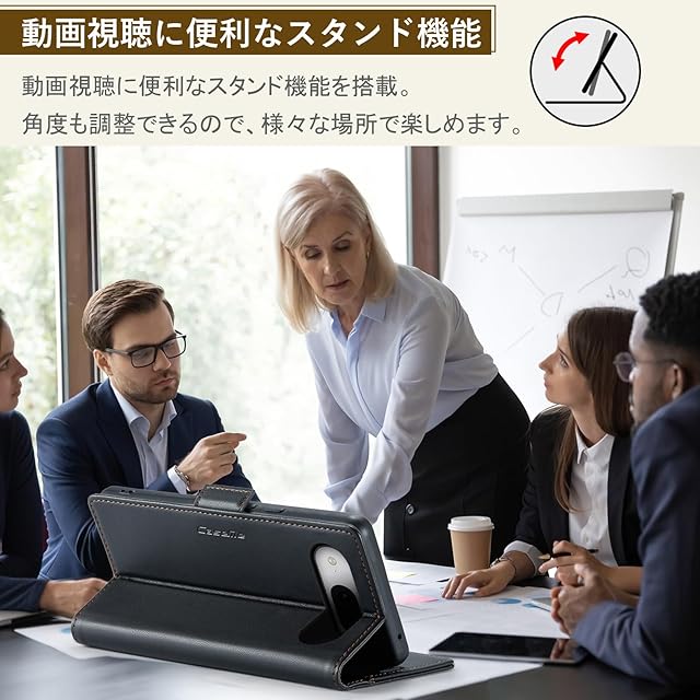 「横置きスタンド機能」ケースの背面から折り曲げて、横置きのスタントとして活用し、バランスよくスマホを支えて、読書や動画勿論、視聴ビデオ通話等でも効率がアップします。