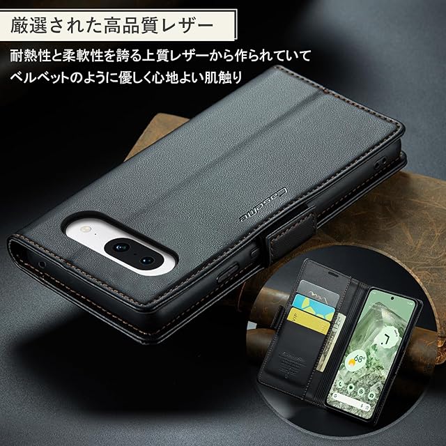「互換性モデル」Google Pixel 8a対応 カード収納 レザーケース。※ご注意:お買い求めの機種を確認してからご購入をお願いします。