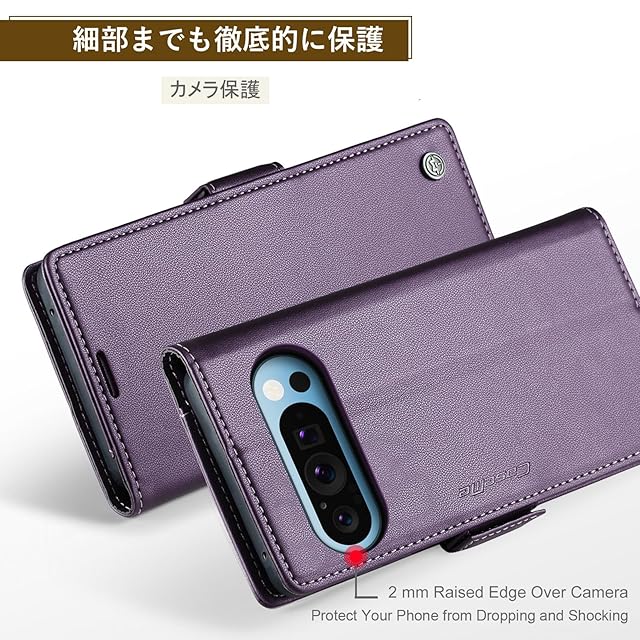 商品名:Google Pixel 9 Pro XL ケース 手帳型 財布型 カードポケット付き ピクセル9 Pro XL 用 携帯カバー カード収納 Uovon スマホケース 高級レザー 耐衝撃 全面保護 スタンド機能 ストラップホール付き マグネット式 · パープル