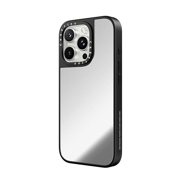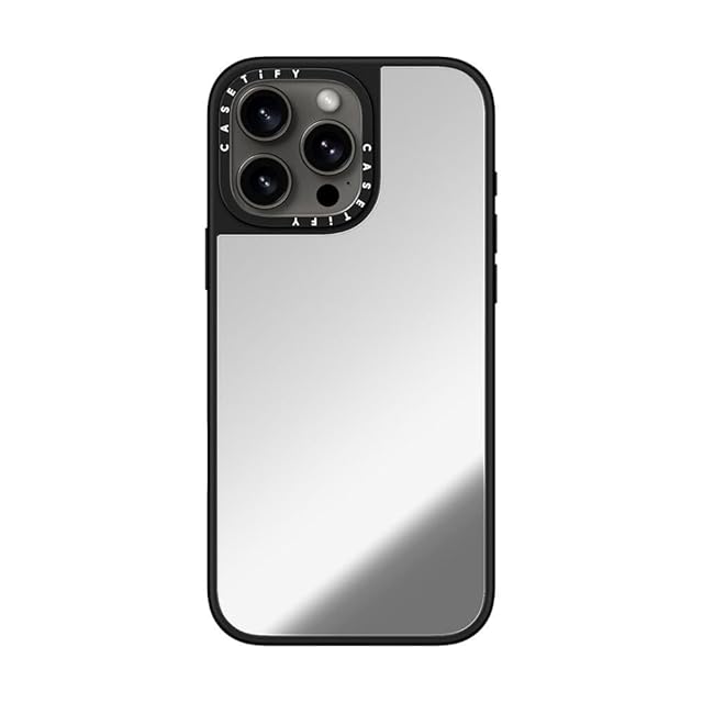 CASETiFY ミラー MagSafe対応 iPhone 16 Pro Max ケース [反射性 / 1.5mからの落下試験をクリア (MIL規格1倍相当) / ワイヤレス充電およびMagsafe対応] - シルバー (ブラックバンパー)