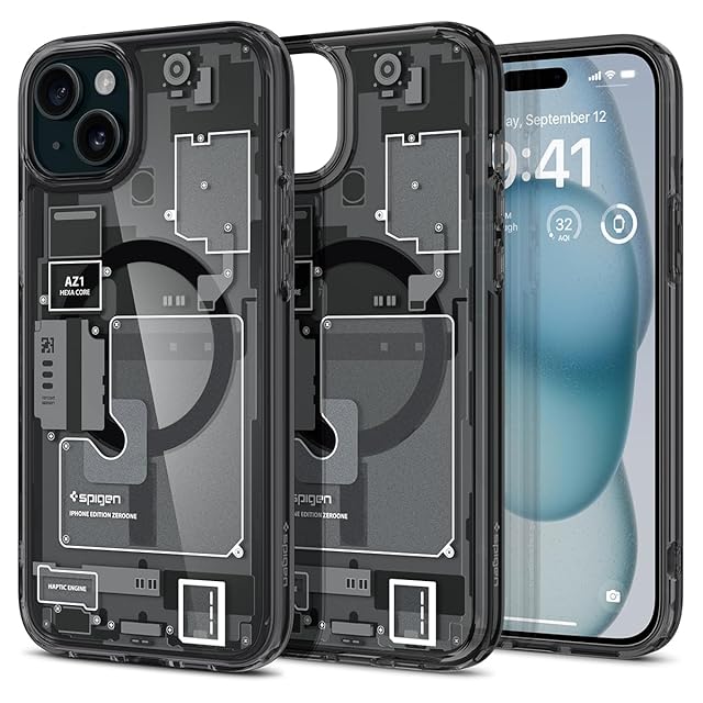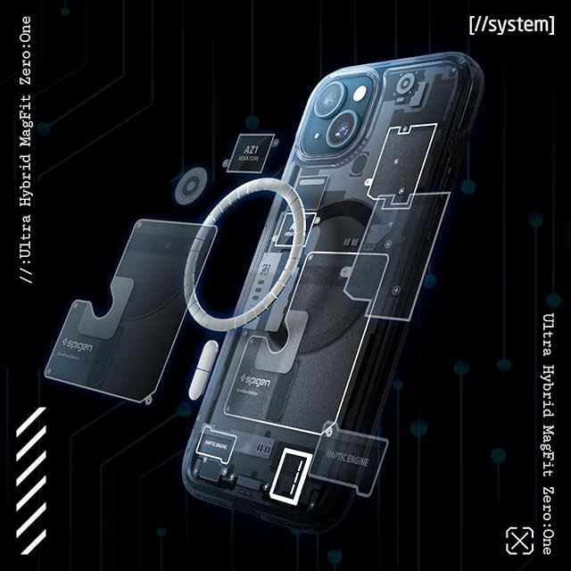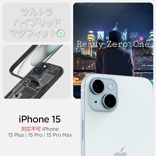 Spigen 【創業18年の技術力】 iPhone 15 ケース MagSafe クリア 耐衝撃 米軍MIL規格取得 ストラップホール 黄変抑制 透明 ストラップホール 2重構造 レンズ保護 擦り傷防止 MagSafe ワイヤレス充電対応 ウルトラ・ハイブリッド マグフィット ACS06806 (ゼロ・ワン)