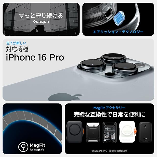 【18年社歴の技術力】Spigen iPhone 16 Pro ケース MagSafe対応 クリア ストラップホール 米軍MIL規格 ウルトラ・ハイブリッド・マグフィット ACS08135 (ゼロ・ワン)