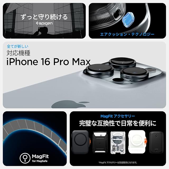 商品名:Spigen 【創業18年の技術力】iPhone 16 Pro Max ケース MagSafe対応 クリア ストラップホール 米軍MIL規格 ウルトラ・ハイブリッド・マグフィット ACS08005 (ゼロ・ワン・ホワイト)