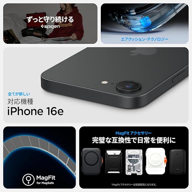 商品名:Spigen 【創業18年の技術力】 iPhone 16e ケース MagSafeアクセサリー対応 マグネット搭載 半透明 ストラップホール 立体的プリント 米軍MIL規格 ウルトラ・ハイブリッド・マグフィット ACS09146 (クラシック・ブラック)