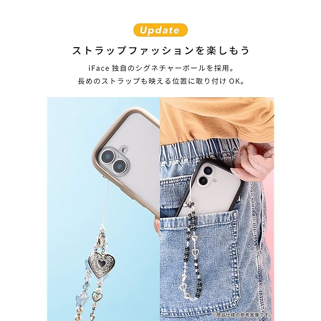 クリアな背面に、シールや写真を入れてカスタマイズが可能 / ガラス飛散防止加工で、万が一の破損も安心 / 手にしっかりフィットする「くびれ」形状で持ちやすさ抜群 / 背面は表面硬度9Hで傷が付きにくい / 強化ガラス複合材とTPUで、端末をしっかり保護 / 画面とカメラを守る、縁高設計 / シンメトリーな設計で背面のガタつきを防ぐ / ケースを付けたままでも操作感を損なわないサイドボタン / 選べる2カ所のストラップホール / シグネチャーボール搭載でストラップの付け方が広がる