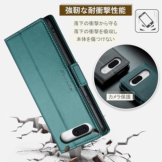 商品名:Google Pixel 8a ケース 手帳型 財布型 カードポケット付き ピクセル8a 用 携帯カバー カード収納 Uovon スマホケース 高級レザー 耐衝撃 全面保護 スタンド機能 ストラップホール付き マグネット式 · グリーン