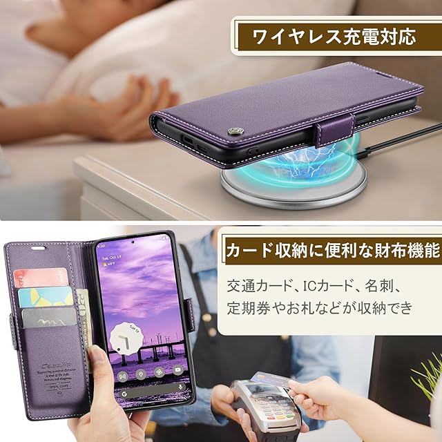 商品名:Google Pixel 9a ケース 手帳型 財布型 カードポケット付き ピクセル9a 用 携帯カバー カード収納 Uovon スマホケース 高級レザー 耐衝撃 全面保護 スタンド機能 ストラップホール付き マグネット式 · パープル