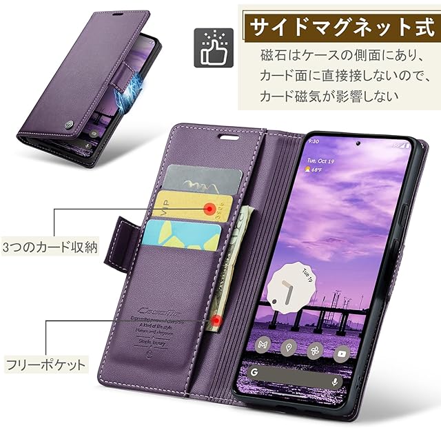 商品名:Google Pixel 10 / 10 Pro ケース 手帳型 財布型 カードポケット付き ピクセル10 / 10 Pro 用 携帯カバー カード収納 Uovon スマホケース 高級レザー 耐衝撃 全面保護 スタンド機能 ストラップホール付き マグネット式 · パープル