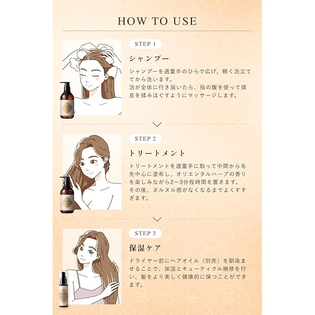 たっぷりアルガンオイルで贅沢うる髪スパ。わたしだけの極上スパで、心と髪、美しく、うるおう。アルガンオイルが与えるうるおいとオリエンタルな香りが、わたしの日常を「特別」に変える精油を独自ブレンドセンシュアルなオリエンタルハーブの香り異国情緒漂うシダーウッド、パチョリ等の精油をブレンドし、上品な大人の魅惑的な香りを演出します。
