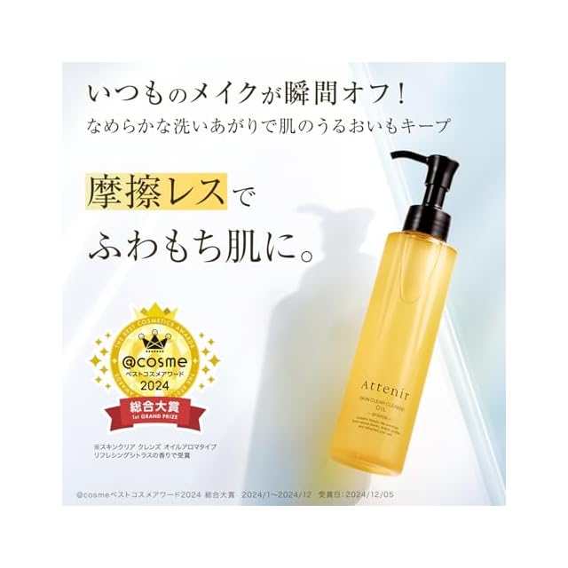 アテニア (Attenir) スキンクリア クレンズ オイル アロマタイプ 350mL (毛穴/乾燥/角質) クレンジング メイク落とし (クレンジングオイル/ダブル洗顔不要) リフレシングシトラスの香り/ 約4か月分 エコパック ポンプ・ 専用ホルダー別売 詰め替え