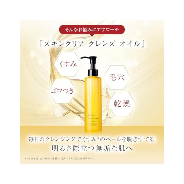 【透明感溢れる明るい無垢な肌へ】<br>優れたメイク落ちとエイジングくすみ*に着目した『スキンクリア クレンズ オイル』。「肌ステイン*」除去だけでなく、肌をやわらかくほぐす「フリーズ角質」ケアを加え、より一層透明感あふれる明るい肌に洗い上げます。*年齢による古い角質の蓄積で肌がくすんで見える様子のこと。*古い角質汚れのこと。<br><br>【摩擦レスの弾力オイル】<br>厚みとクッション性にこだわった摩擦レスのクレンジングオイル。弾力のあるとろみがメイクにしっかりと絡んで浮かし、マスカラやリキッドアイライナーまでするんとオフ。贅沢な使用感と素早いメイク落としを両立させました。W洗顔不要・濡れた手でもOK・まつ毛エクステにも使えるクレンジングです。<br><br>【しっとりとした洗い上がり】<br>エイジングケアを見据え、8種の天然植物オイルを厳選。明るくやわらかな素肌へ洗い上げます。多角的なくすみ*ケアはもちろん、毛穴・角栓ケアのためのメドウフォームオイル、保湿・柔軟ケアのためのインカオメガオイルも配合しました。クレンジングオイルタイプが苦手な方にもおすすめです。*年齢による古い角質の蓄積で肌がくすんで見える様子のこと。<br><br>【ストレスフリーとエコを両立】<br>手間なく清潔に続けられて、使い終わりも無駄がないエコパック*。長く使える大容量なので、買い換える手間が減りコスパも◎。毎日のクレンジングで地球にも使う人にもやさしくご使用いただけます。*専用ホルダーへセットして使用後、小さく捨てられるレフィルです。<br><br>【商品詳細】<br>内容量:350ml/約4ケ月分(エコパック*)、タイプ:アロマタイプ<br><br>【商品特徴】<br>ダブル洗顔不要、濡れた手でも使えます。肌が非常に濡れている洗髪後などは、軽く水気を拭き取ってからお使いください。一般的なグルー(シアノアクリレート系)を使用したまつ毛エクステンションをご使用の方もお使いいただけます。強くこするとまつ毛自体が抜けやすくなりますので、エクステの流れに沿ってやさしく馴染ませてください。*専用ホルダーへセットして使用後、小さく捨てられるレフィルです。/無着色、無鉱物油、パラベンフリー、アルコールフリー アレルギーテスト済み・ノンコメド処方(ニキビのできにくい処方)※すべての方にアレルギー、コメドが起きないわけではありません。/アテニアはファンケルのグループ会社です。<br><br>【配合成分】<br>ククイナッツオイル・ホホバオイル・珊瑚草(サンゴソウ)オイル・ロックローズオイル・イモーテルオイル(古い角質によるくすみのない肌を保つエモリエント成分)、メドウフォームオイル・アルガンオイル(毛穴汚れ除去成分)、インカオメガオイル(バリア機能・うるおい補助成分)配合。スピーディメルティング処方