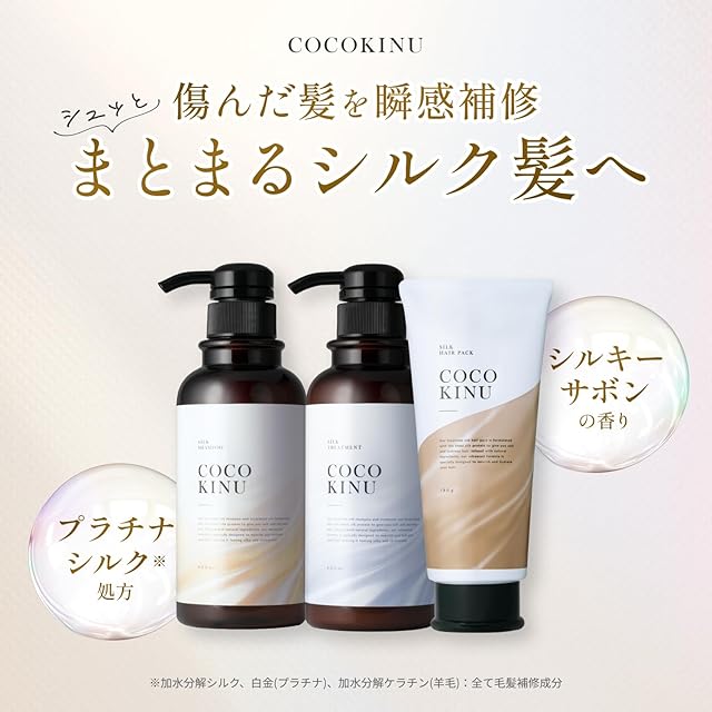 ココキヌ(COCO KINU)サロンシャンプー トリートメント ヘアマスク(3点セット)美容室専売品 ダメージ集中補修 シルキーサボンの香り