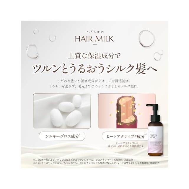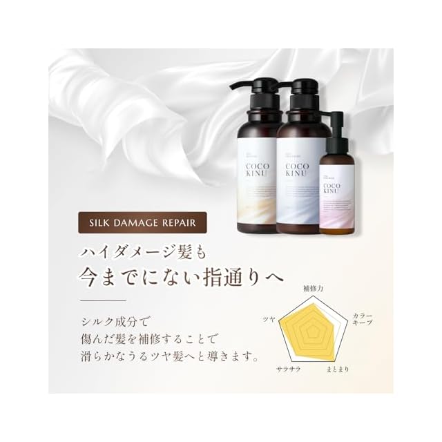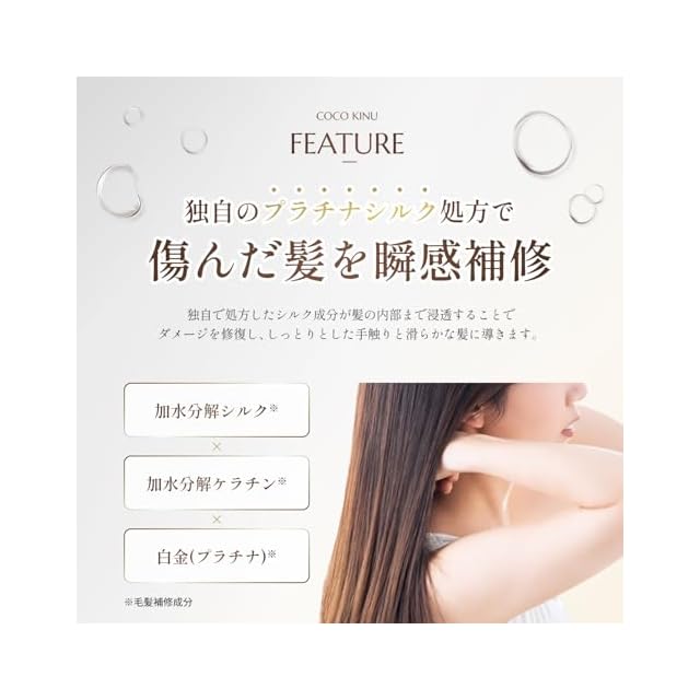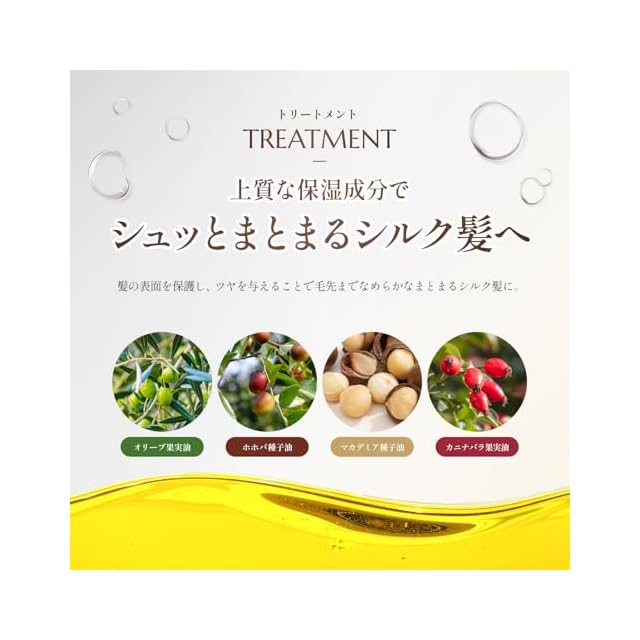 ✅【シュッとまとまるシルク髪へ】こだわり抜いた補修成分がダメージを浸透補修。髪の表面を保護し、ツヤを与えることで毛先まで滑らかなまとまるシルク髪に。