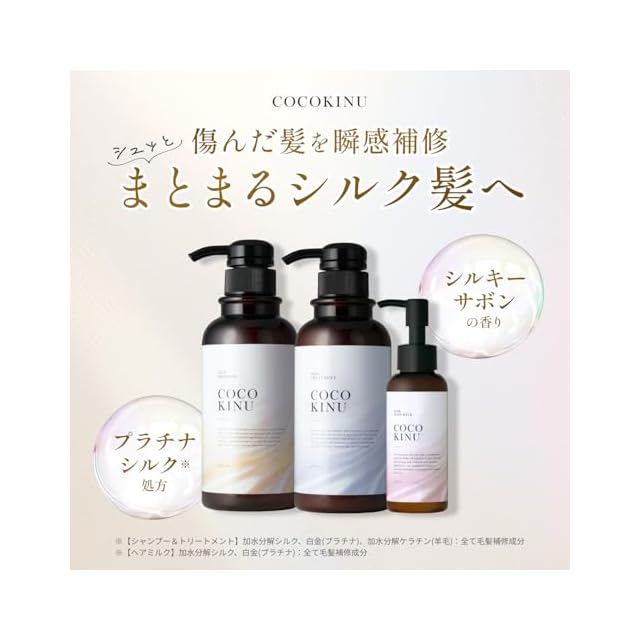 ココキヌ(COCO KINU)サロンシャンプー トリートメント ミルク(3点セット)美容室専売品 ダメージ集中補修 シルキーサボンの香り