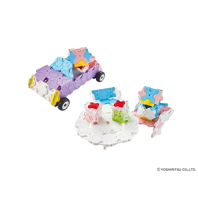 アイスクリームやさんごっこができる「アイスクリームワゴン」、かわいいペンギンたちが集まる「カフェテラス」、「ペンギン(ピンク・ラベンダー・スカイグルー)」など、14種類のかわいいモデルに組み替えられる作り方の本1冊つき。