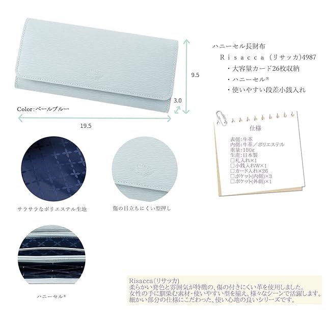 商品名:[キプリス] リサッカ 長財布 ハニーセル かぶせ 財布 レディース ウィメンズ Women’s 革 レザー 父の日 母の日 ギフト プレゼント 誕生日 ペールブルー 4987