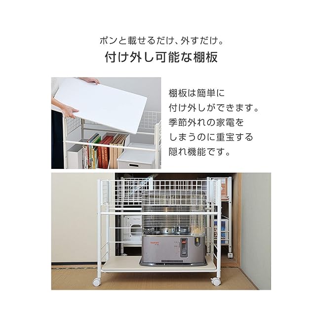 商品名:山善(YAMAZEN) 押入れ (クローゼット) 収納ラック 幅37.5×奥行77×高さ64.5cm ストッパー付き キャスター 棚板着脱可能 組立品 ホワイト OSR-7538WH/WH