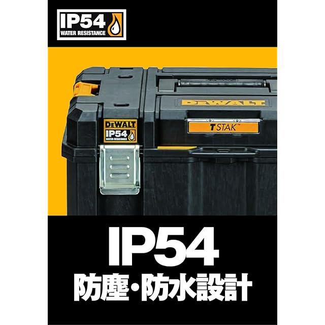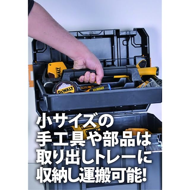 デウォルト(DEWALT) TSTAK ラージボックス Lサイズ 工具箱 収納ケース ツールボックス 大容量 積み重ね収納 脱着トレー IP54 坊塵 防水 設計 DWST83346-1
