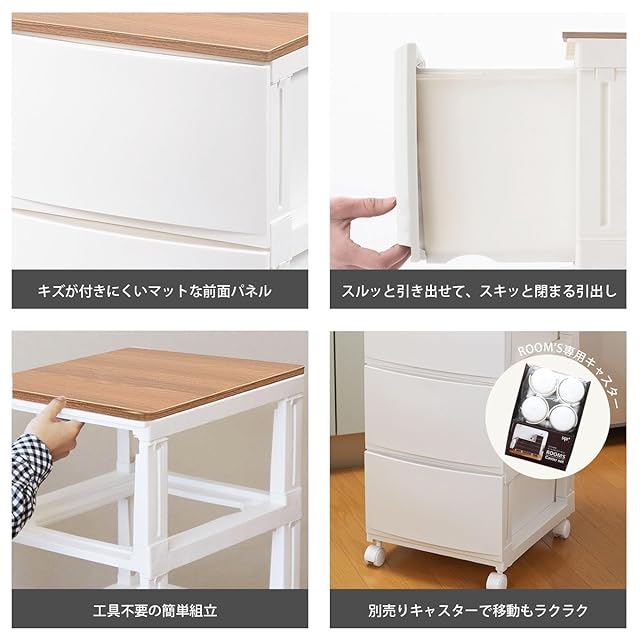 商品名:サンカ ルームス 木天板 収納 チェスト ホワイト 白 スリム 4段 (幅34×奥行42×高さ88cm) スルっと引き出せて スキッと締まる引き出し キズ付きにくいマット加工パネル 簡単組み立て 日本製 衣装ケース タンス ROOM'S shade squ+ RSDM-S344WH