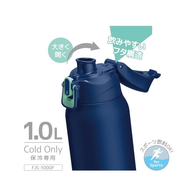 サーモス 水筒 真空断熱スポーツボトル 1L ネイビーミント 保冷専用 子供用 ポーチ付き 肩に優しいストラップ FJS-1000F NVMT
