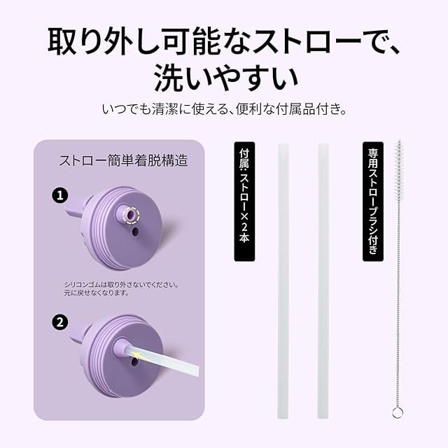 【ストロー付き飲み口|こぼれにくく便利】 ストローでそのまま飲める仕様だから、移動中や作業中にも片手でスムーズに水分補給。お子さまにも安心してお使いいただけます。