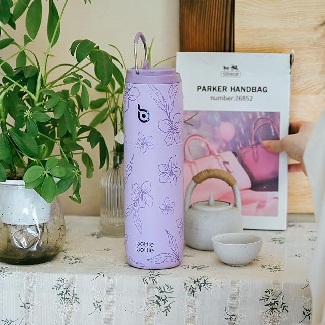 BOTTLE BOTTLE 水筒 1リットル 大容量 1000ml ストロー付き 直飲み 保温保冷 真空断熱 子供 大人 持ち手付き おしゃれ 1L ボトル ステンレス 魔法瓶 二重構造 女の子 男の子 持ち運び スポーツ アウトドア パープルブルーム