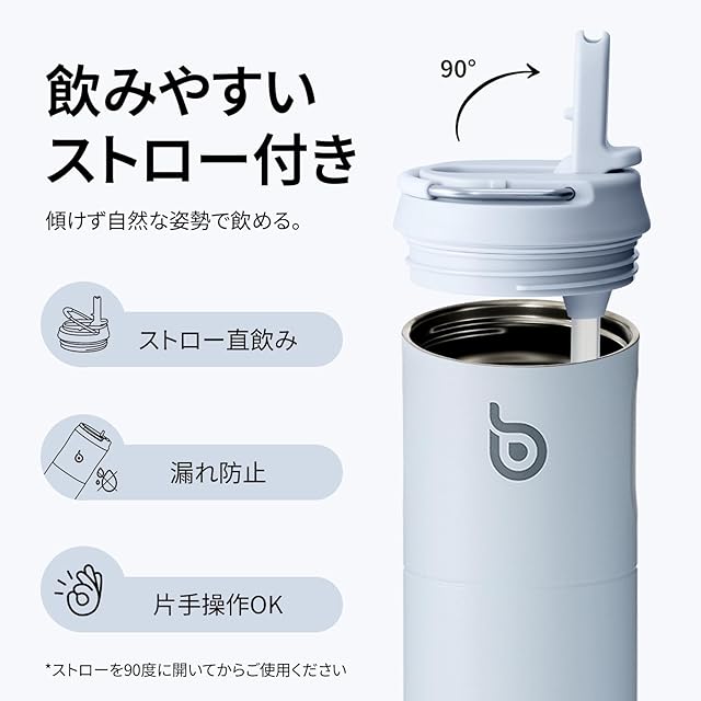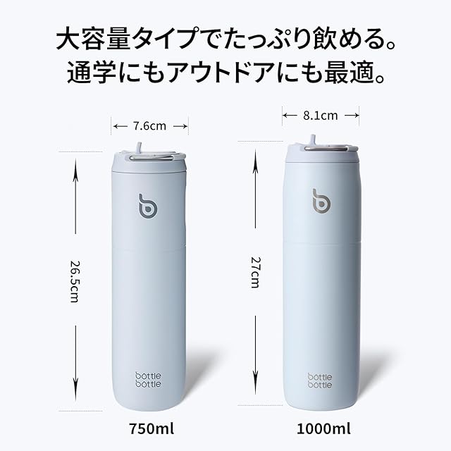 BOTTLE BOTTLE 水筒 0.75L 大容量 ストロー付き 直飲み 保温保冷 真空断熱 子供 大人 持ち手付き おしゃれ 750ml ボトル ステンレス 魔法瓶 二重構造 女の子 男の子 持ち運び スポーツ アウトドア ライトブルー ストロー Light Blue