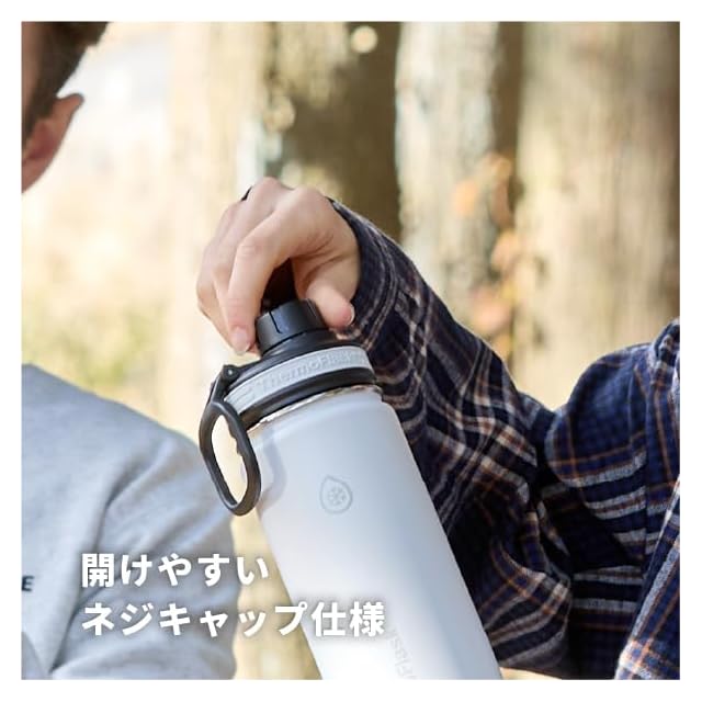 アメリカ カリフォルニア・ハンティントンビーチ生まれのThermoFlaskがリニューアル!スリム&軽量化でさらに快適に! ◆保冷専用直飲みタイプです。 ◆真空断熱ステンレス構造で、保冷力抜群の保冷専用ステンレスボトルです。 ◆底部を衝撃から守るシリコーンバンパーは標準装備でファッショナブルな仕様です。 ◆本体は、濡れていても滑りにくくキズに強い塗装仕様です。 ◆持ち運びに便利なキャリーハンドル仕様です。 ◆飲み口はPETボトルの使用感で開閉できます。 ◆食器洗い乾燥機のご使用はお避けください。 ご使用前には取扱説明書をよくお読みください。 ●容量:0.7L ●商品重量:約325g ●商品サイズ: ハンドルダウン時 幅75mm×奥行80mm×高さ270mm ハンドルアップ時 幅75mm×奥行75mm×高さ310mm ◎本体 ◆アウター:ステンレス鋼 ◆インナー:ステンレス鋼 ◎フタユニット ◆フタ:ポリプロピレン ◆ネジキャップ:ポリプロピレン ◆ハンドル:ポリプロピレン ◆シリコーンリング:シリコーンゴム ◆ネジキャップパッキン:シリコーンゴム ◆フタパッキン:シリコーンゴム ◆軸:ステンレス鋼 ◎バンパー ◆シリコーンバンパー:シリコーンゴム ●原産国:中国