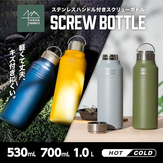 パウダー塗装でキズつきにくく滑りにくいいタフなボトルです。丈夫なステンレス製ハンドル付きでアウトドアに最適。広口で氷が入れやすく、ドリップしたコーヒーの香りも楽しめます。最小限のパーツ数で洗いやすい。真空断熱構造&内びん銅メッキ加工で保温保冷効果が高く、飲み物の美味しい温度が長持ち。