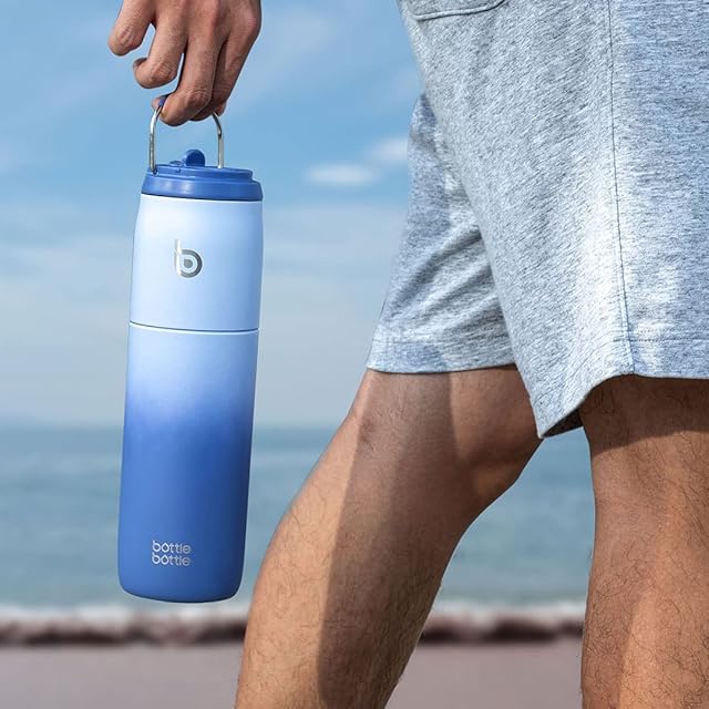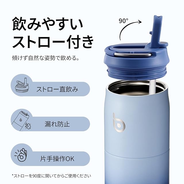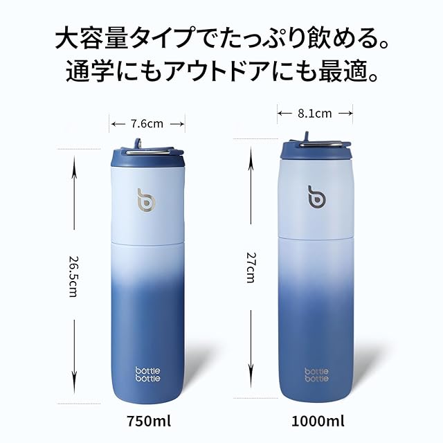 商品名:BOTTLE BOTTLE 水筒 1リットル 大容量 1000ml ストロー付き 直飲み 保温保冷 真空断熱 子供 大人 持ち手付き おしゃれ 1L ボトル ステンレス 魔法瓶 二重構造 女の子 男の子 持ち運び スポーツ アウトドア ブルー