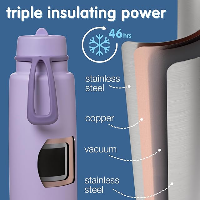 小学生以上の大きなお子様から大人の方まで使える、1リットルの大容量のドリンクボトルです。高品質なステンレスを使用した三層断熱構造のボトルで、最長46時間冷たさをキープできます。フリップトップ式の飲み口で蓋の開け閉めの手間がなくさっと飲むことができます。飲み口を閉じた際には漏れにくく、柔軟で耐久性のあるキャリーハンドルがついているのでお出かけにおすすめのドリンクボトルです。デザインもシンプルで氷も入れやすいボトルの開口でお手入れも簡単です。食洗機にも対応しています。