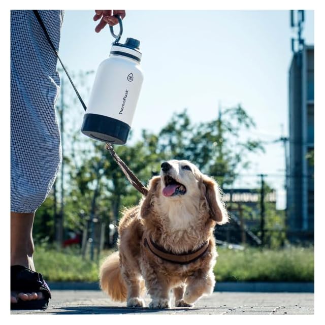 ペットとのお出かけに最適なステンレスボトルThermoFlask Sharebottle ◆リードも持ちやすい便利なワイドサイズのキャリーハンドル仕様です ◆底部を衝撃から守り、ペットの水やりにも便利なシリコーンボウル ◆本体は、濡れていても滑りにくくキズに強い塗装仕様です ◆真空断熱ステンレス構造で、保冷力抜群の保冷専用ステンレスボトルです ◆氷が入れやすい広口タイプです ◆飲み口はPETボトルの使用感で開閉できます ◆食器洗い乾燥機のご使用はお避けください ◆スポーツドリンクにもご使用いただけます ※カビや錆びの原因になる可能性がありますので、ご使用後は中身の種類に関わらず速やかに洗浄お願いいたします ご使用前には取扱説明書をよくお読みください。
