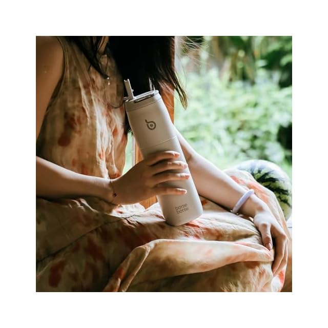 BOTTLE BOTTLE 水筒 1リットル 大容量 1000ml ストロー付き 直飲み 保温保冷 真空断熱 子供 大人 持ち手付き おしゃれ 1L ボトル ステンレス 魔法瓶 二重構造 女の子 男の子 持ち運び スポーツ アウトドア ライトグレー