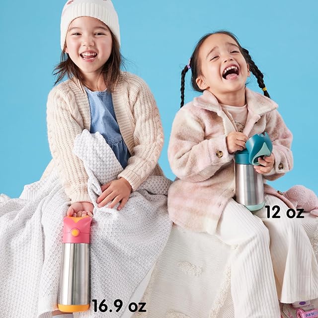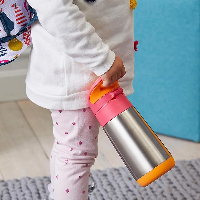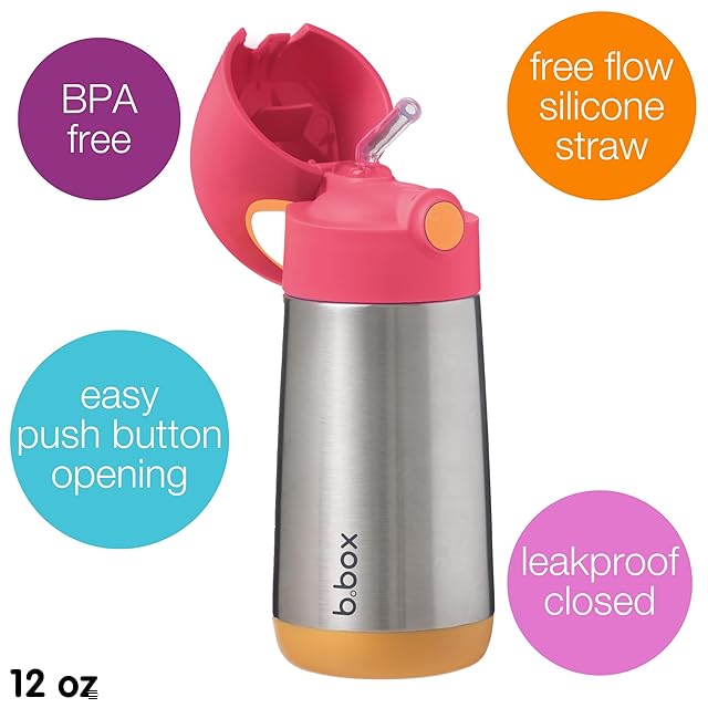 b.box(ビーボックス) 子供 水筒 ストロー 断熱ドリンクボトル 350ml 保冷 保温 ワンプッシュ式 上段食洗機OK 【b.box正規品】 【ステンレスボトル】 ストロベリーシェイク