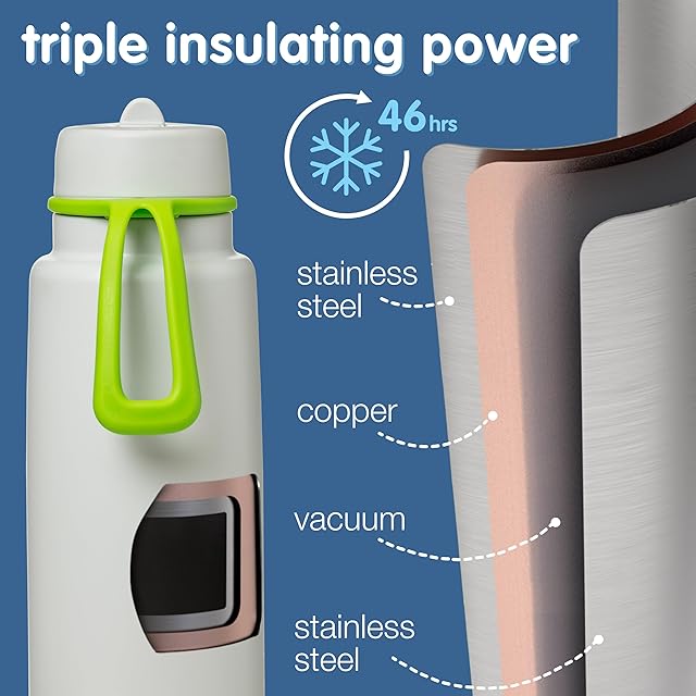 小学生以上の大きなお子様から大人の方まで使える、1リットルの大容量のドリンクボトルです。高品質なステンレスを使用した三層断熱構造のボトルで、最長46時間冷たさをキープできます。フリップトップ式の飲み口で蓋の開け閉めの手間がなくさっと飲むことができます。飲み口を閉じた際には漏れにくく、柔軟で耐久性のあるキャリーハンドルがついているのでお出かけにおすすめのドリンクボトルです。デザインもシンプルで氷も入れやすいボトルの開口でお手入れも簡単です。食洗機にも対応しています。