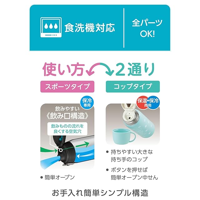 保温効力:(中せん使用時)72℃以上(6時間)/ 保冷効力:(キャップユニット使用時)9℃以下(6時間)