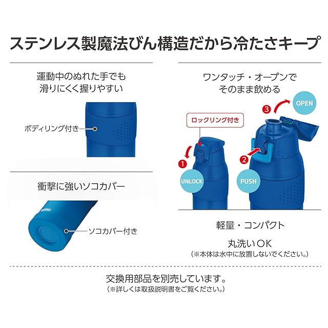 素材:内びん:ステンレス鋼 / 胴部:ステンレス鋼(アクリル樹脂塗装)/ フタ・キャップ本体:ポリプロピレン / フタパッキン・シールパッキン・ソコカバー:シリコーンゴム
