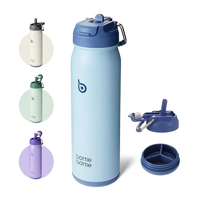 【ユニークな底部収納スペース】Bottle Bottle水筒の底部には、実用的な収納スペースが隠されています。この取り外し可能なスペースは、薬やビタミン、ティーバッグなどの小物を収納するのにぴったり。使い勝手の良さと便利さが一体となったデザインです。