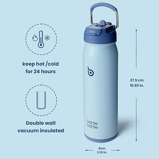 【長時間保冷・保温真空設計】真空断熱技術を採用したBottle Bottle水筒は、飲み物を長時間冷たいまま、または温かいままキープします。保冷効果は最大24時間、保温効果は最大16時間と、日中のどんな場面でもあなたの飲み物を理想の温度で楽しむことができます。