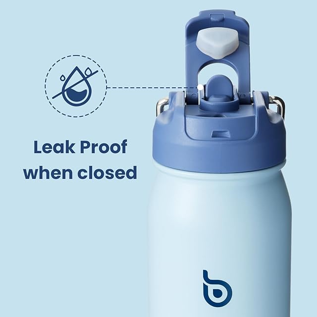 BOTTLE BOTTLE 水筒 650ml 子供 ストロー付き 直飲み 保冷水筒 底部收纳 2WAY蓋 真空断熱 ステンレスボトル 漏れ防止 男の子 女の子 魔法びん スポーツボトル ブルー
