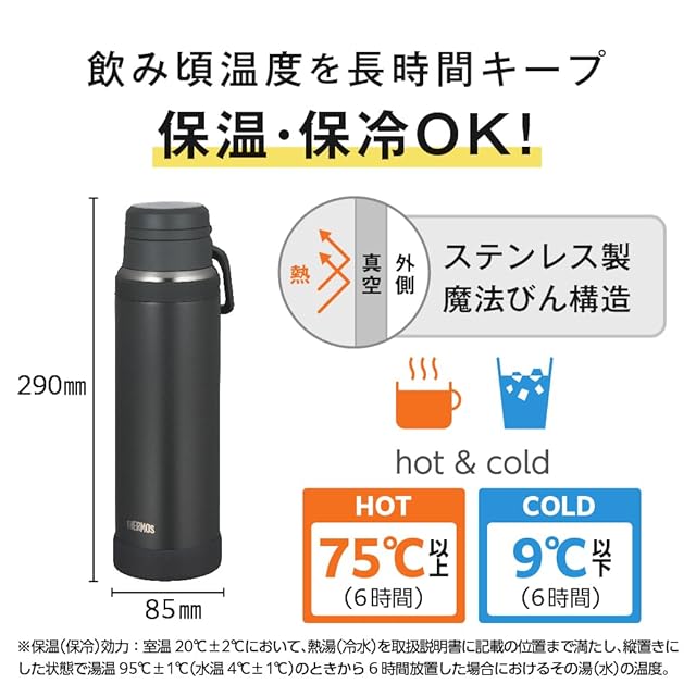 保温効力:75℃以上(6時間)/ 保冷効力:9℃以下(6時間)