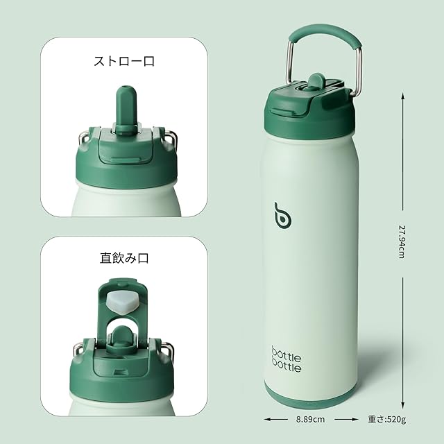 BOTTLE BOTTLE 水筒 底部收纳 2WAY蓋 スポーツドリンク対応 二重構造 保温保冷 炭酸飲料対応 スポーツボトル スポーツドリンク対応 大容量 ステンレスボトル ストロー付き アウトドア水筒 漏れ防止 食洗機対応 子供 男の子 女の子